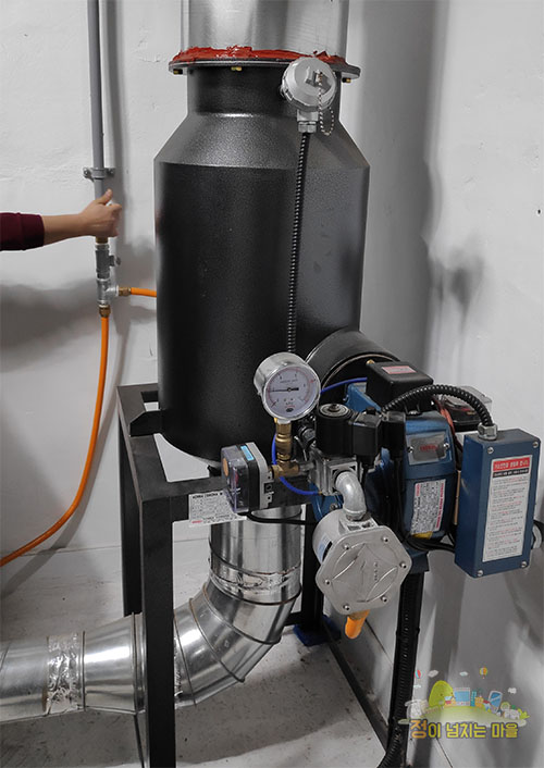원두를 볶으면서 어마어마한 연기가 발생되겠죠. 그 연기를 축소 정화 하는 개념의 장치인 것 같습니다.