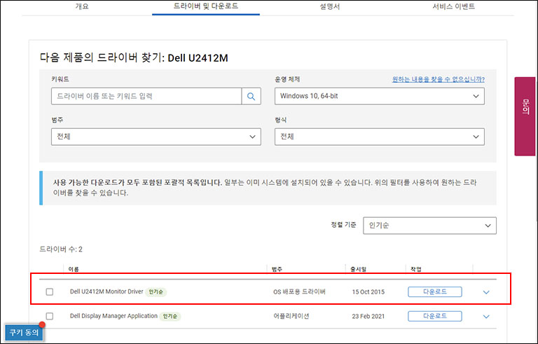 각자 모니터 제조사 홈페이지를 검색 하셔서 사용 중인 모델명을 입력하세요. 특별한 경우를 제외하고 제조사에서는 최적호된 화된 색상과 화질을 위해 드라이버를 제공하고 있습니다.