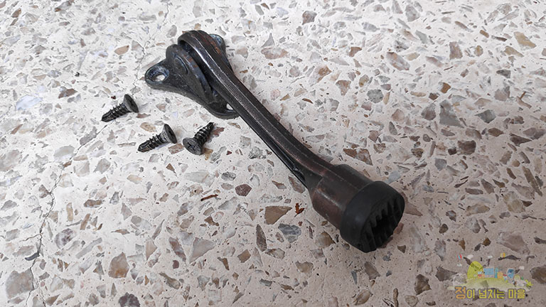 3년가량 사용한 것 같습니다. 발굽에 부착된 고무가 닳아 문의 고정 기능이 상실되었습니다. 하지만 이를 한 번 더 사용할 수 있습니다. 방법은 아래..