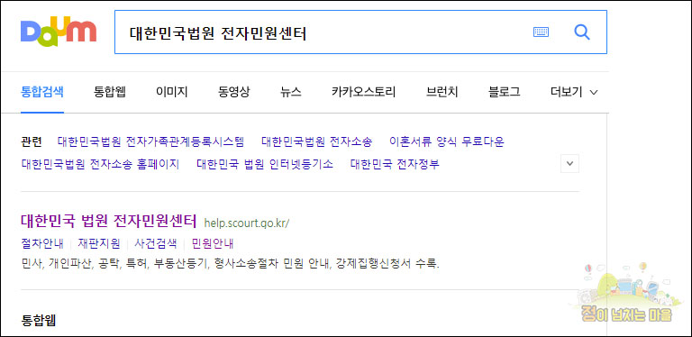 검색란에 '대한민국법원 전자민원센터'를 입력하여 키보드 엔터 혹은 우측 돋보기를 클릭합니다.